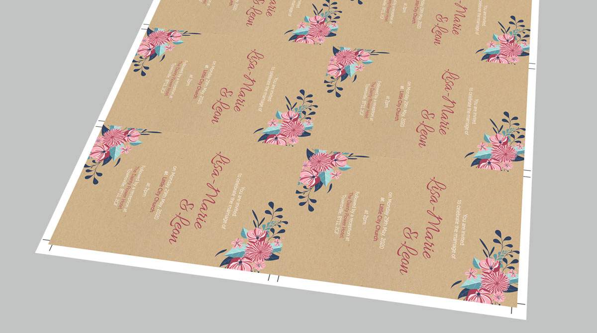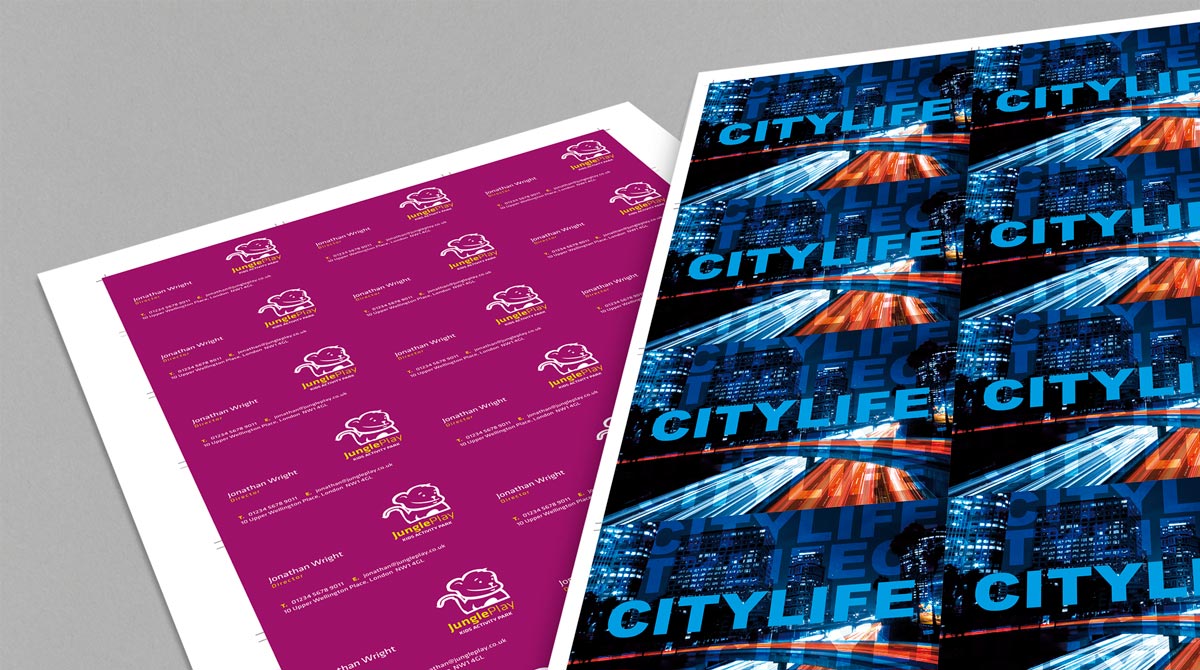 We can provide you with flat unfinished sheets, with your design printed on SRA3+ paper, ideal for trade printing. This has the benefit of saving you money if you want to trim the paper yourself. If you are a trade print customer, or you have your own finishing equipment, you may wish to take advantage of our available capacity to produce untrimmed printed sheets, which you can finish to your own specifications. For example, you may wish to order business cards printed on flat unfinished sheets and use your own guillotine to cut them to size.